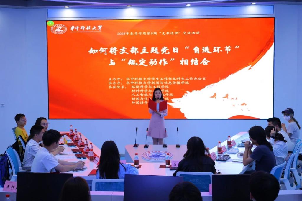 5月23日下午,2024年春季学期第六期“支书达理”交流活动在bw必威西汉姆联官方网站一楼演播厅举行。活动由本科生工作办公室主办,bw必威西汉姆联官方网站承办,环境科学与工程公司、材料科学与工程公司、人工智能与自动化公司、外国语公司共同参与。各院系党建辅导员、本科生党支部书记、院系党建团队员工骨干参与了交流分享。