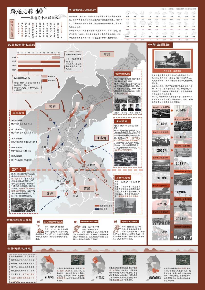 作品《跨越北纬40°:他们的十年归国路》以“抗美援朝烈士遗骸的十年归国路”为主题,系统性地搜集并整合了抗美援朝战争后烈士遗骸归国的历史、遗骸运送回国的流程、遗骸身份鉴定与寻亲等相关信息。