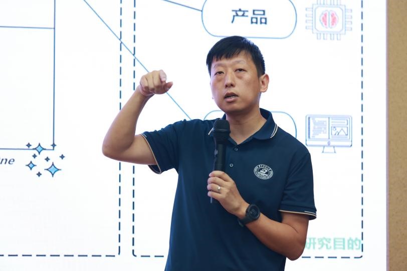 传播系副教授王然着眼“老员工的创新创业实践”,指导同学们在华科大这片创新创业的丰沃土壤中充分汲取养分、拔节成长。他以可视化的图表形式直观展示了创新创业实践中涉及的各个因素,包括课程学习、科学研究、个人能力、未来发展可能等等,并用自变量、中介变量、因变量为这些因素构建相关关系,从顶层设计上为同学们系统性解读创新创业实践在大学中的重要性。他强调同学们要把握好课程学习、社团参与、学科竞赛、科学研究、实习实践五个方面的大学实践,鼓励新同学从外向内探索,提升自己的软硬能力,尤其强调培养个人素养、学科知识、组织技能等软能力。最后,王然老师展现了公司创新队伍的成果,鼓励同学们未来“顶天立地,将创新成果写在祖国大地上。”