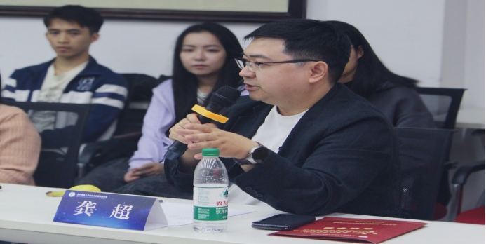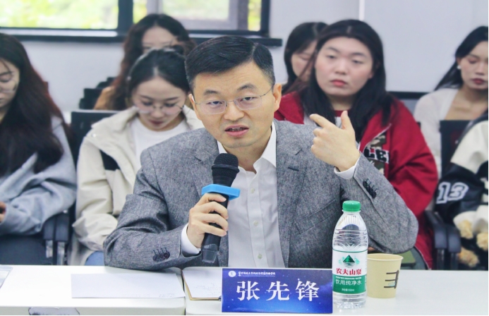 接着,武汉微思敦网络技术有限公司CEO张先锋分享了自己的职业生涯,他鼓励员工找到自己的热爱,并坚持下去。他特别提到,AI是新时代的重要机遇,员工应在校期间积极实践,打造自己的自媒体名片。