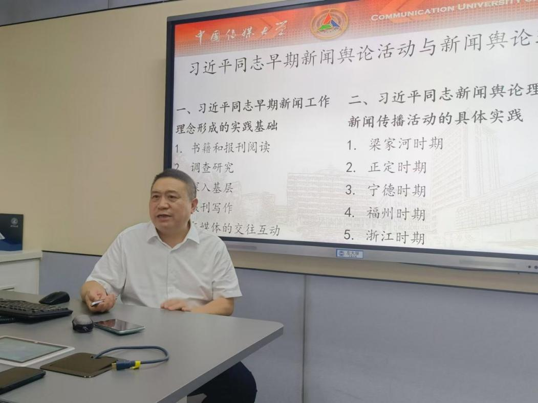 王灿发教授从习近平总书记个人经历、早期新闻舆论理念和新时代新闻舆论工作的重要论述三方面展开讲解。他结合历史资料,讲述了总书记从青年到现今的发展履历,以及在地域转换、身份转变中逐渐培养起初步的新闻舆论观。尤其在知青时期,他在与各方媒体打交道的过程中,体会到新闻工作的重要性和典型报道的巨大作用。
