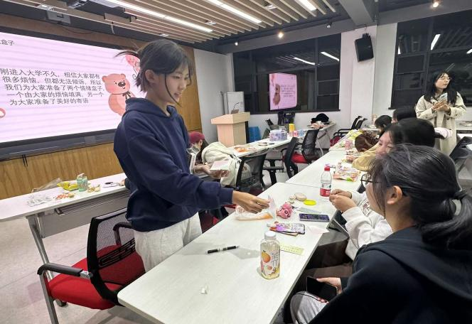 活动主要分为两个环节,分别为秋日来信与秋日大作战。心理委员为同学们准备了落叶、干花标本、胶水和贺卡,让同学们为最想写信的对象DIY一份别出心裁的“秋日来信”,让大家享受慢下来的愉悦和放松。秋日大作战环节,同学们在猜热梗的过程中欢声笑语不断,达到了“破冰”目的。希望此次活动的开展,可以让大家更加熟络,敞开心扉地悦纳美好的老员工活。
