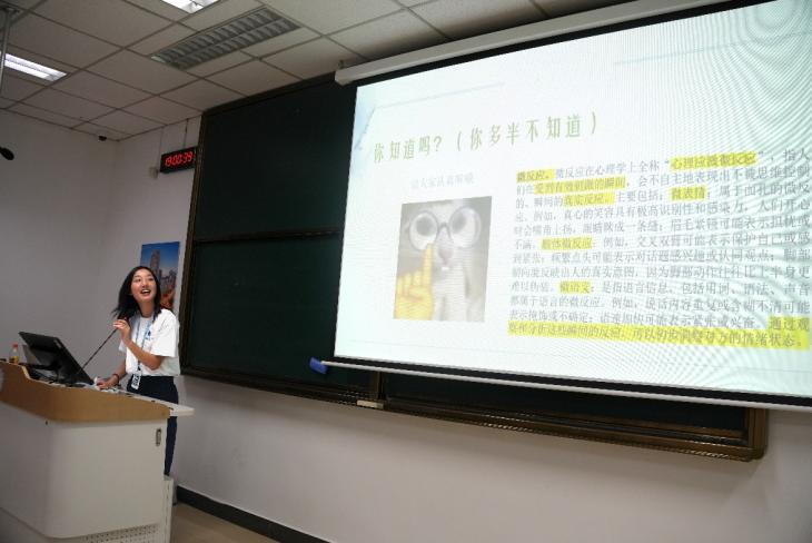 暖场小游戏放松心情,“经典配音秀”和“你画我猜”环节让同学们卸下包袱,放飞自我,将活动氛围推向高潮。活动中,两班心理委员向同学们讲解了“愤怒”“悲伤”等情绪的本质,形成原因和疏解方法,并向同学们推荐了自传书籍,鼓励大家从旁人的生命历程中汲取力量。
