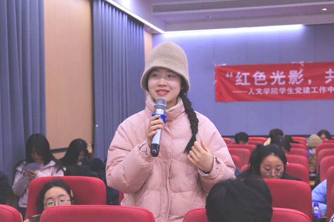观影结束后,现场同学积极踊跃地参与到观影体会的分享环节中。新闻学子以视听语言等媒介艺术的视角进行交流,真实且鲜活地反映出电影作为文化传播媒介所具有的强大艺术魅力与情感渲染力。人文学子从电影主题、角色刻画、情节起伏以及画面铺陈等多个维度,深入剖析了影片所蕴含的红色文化内涵,情感真挚而饱满。现场气氛随着观点的交流与碰撞不断升温,这些积极的反馈为红色文化在新时代青年群体中的传承与发展提供了生动的样本素材。