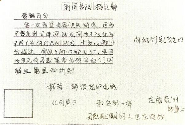 在明信片寄语环节,同学们积极推荐了一些爱国红色影片,这些影片都承载着厚重的历史记忆和伟大的民族精神,为传承红色基因贡献着独特的力量,进一步激发着人们的爱国情怀与奋斗之志,让红色文化的光芒持续闪耀。