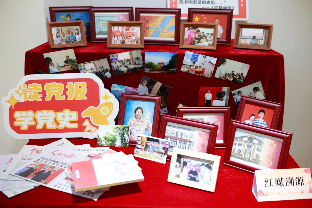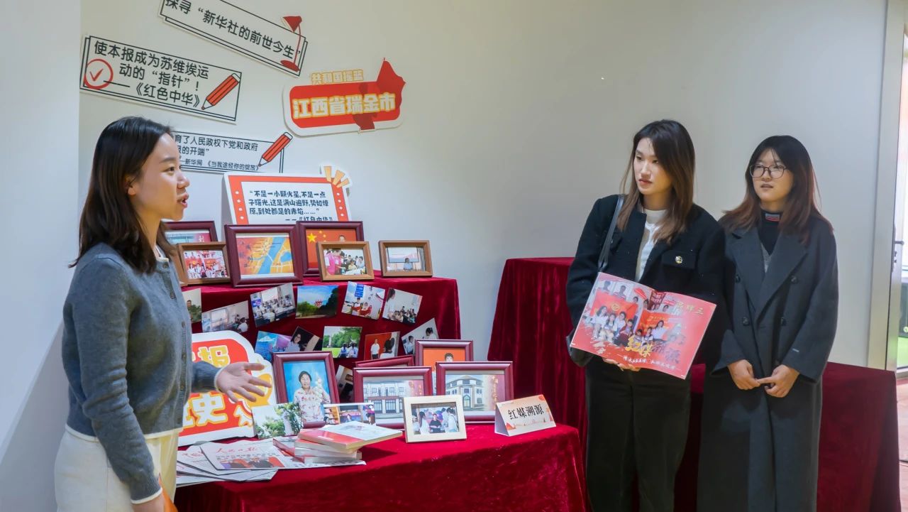 在红媒溯源展台前,队伍指导老师许静静介绍了实践队探寻“新华社前世今生”的过程:“今年夏天,我们在红色故都江西瑞金举办了一场‘红媒展’,用老物件、历史资料、影像照片讲述百年党媒史的故事。”