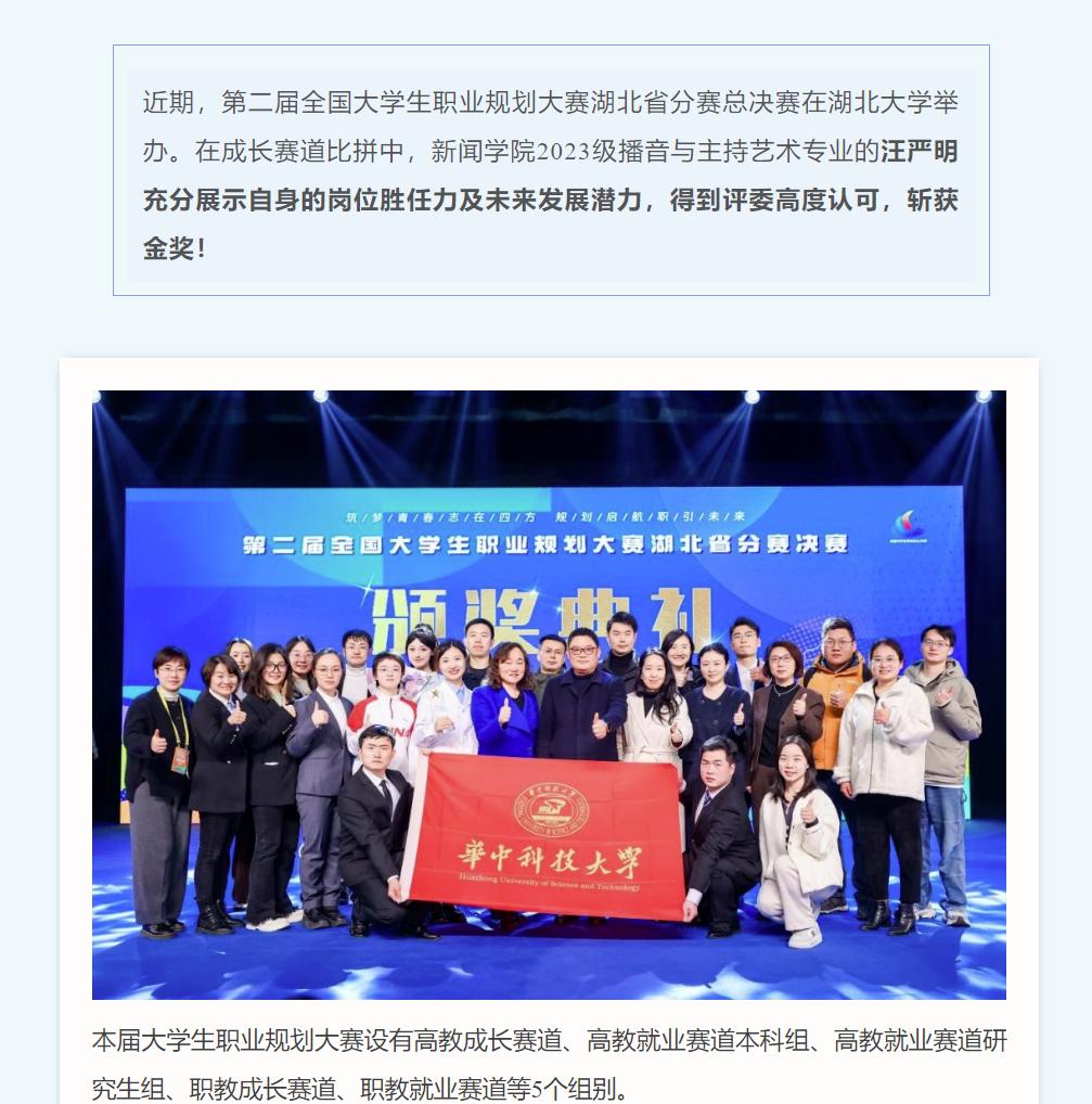省金+1!​bw必威西汉姆联官方网站本科生汪严明荣获全国老员工职业生涯规划大赛湖北省金奖