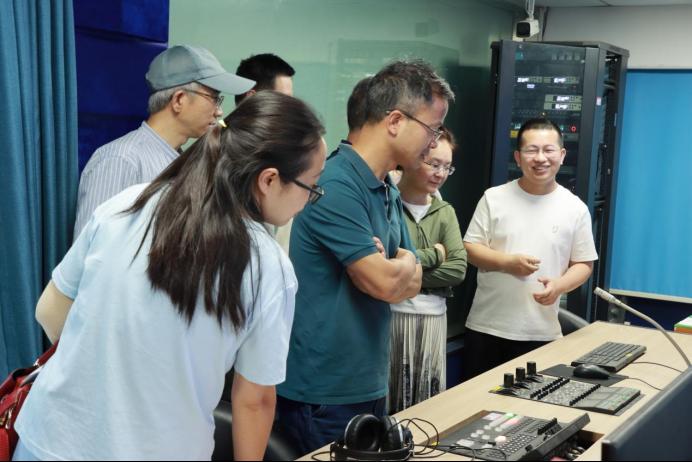在演播大厅,与会老师体验了大型LED屏幕、智能灯光、导播台等广播级配置所营造出的专业氛围,对员工在此开展多机位拍摄、新闻播报与综艺录制等全流程实训表示高度评价。