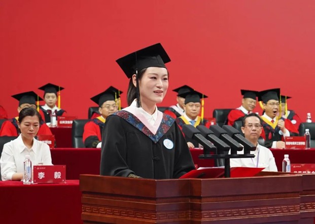 抬眸四顾乾坤阔,日月星辰任我攀。在这里,我想代表2025届全体毕业生,感谢母校的培养与关怀。我们将从华科大出发:以勤学之我,不懈奋斗,追求卓越!以创新之我,牢记使命,勇立潮头!以实干之我,在祖国和人民最需要的地方,在强国建设的征程上,挺膺担当,奋勇前行!