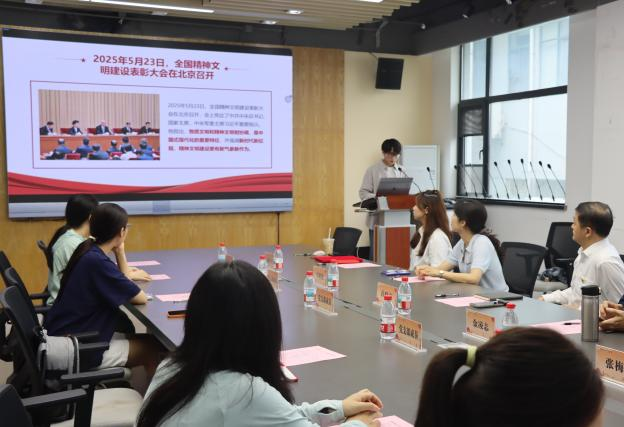 员工支部成员单琪引领大家深入学习习近平总书记关于精神文明建设的重要指示,从物质与精神文明协调、社会主义核心价值观融入治理生活及中国人的精神特质等方面阐述,结合公司“全国文明校园”创建成果,呼吁同学投身新时代精神文明建设实践。