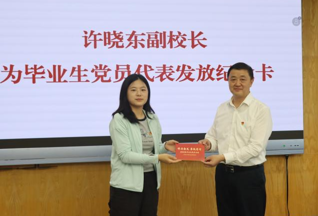 活动最后,许晓东为毕业生党员颁发了纪念卡,激励党员牢记初心,砥砺前行。
