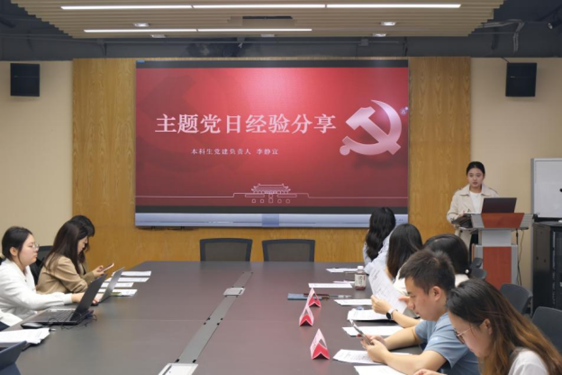 本科生员工党建负责人李静宜分享了“如何开展主题党日”的实践经验。她介绍主题党日既要注重思想引领,也要贴近员工实际,可以尝试通过情景模拟、座谈交流、校外实践等多种形式,增强活动的吸引力和实效性,助力各支部提升活动质量与实效。
