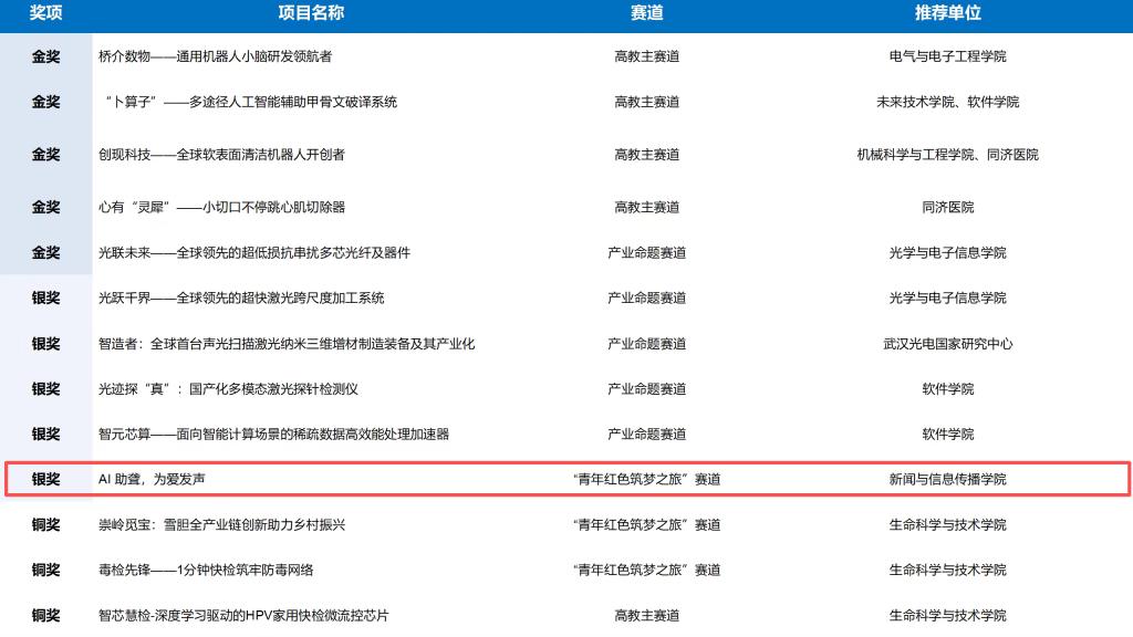 项目成果显著,已入选联合国 AI for good 全球峰会 “创新影响年度应用案例”,并斩获挑战杯 “揭榜挂帅” 专项赛全国特等奖、第七届中国青年志愿服务项目大赛金奖,相关事迹获中央电视台新闻联播、人民日报、中青报等多家主流媒体报道。