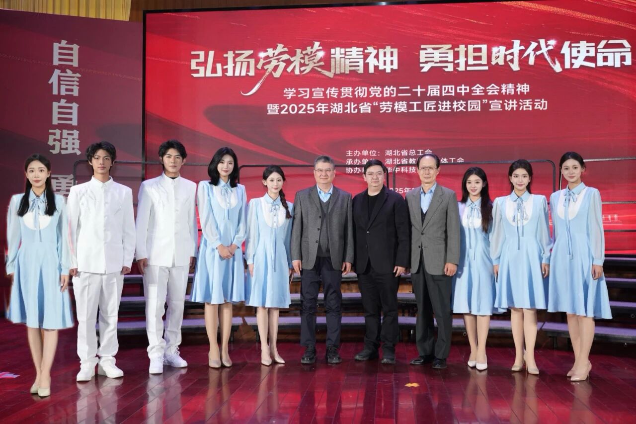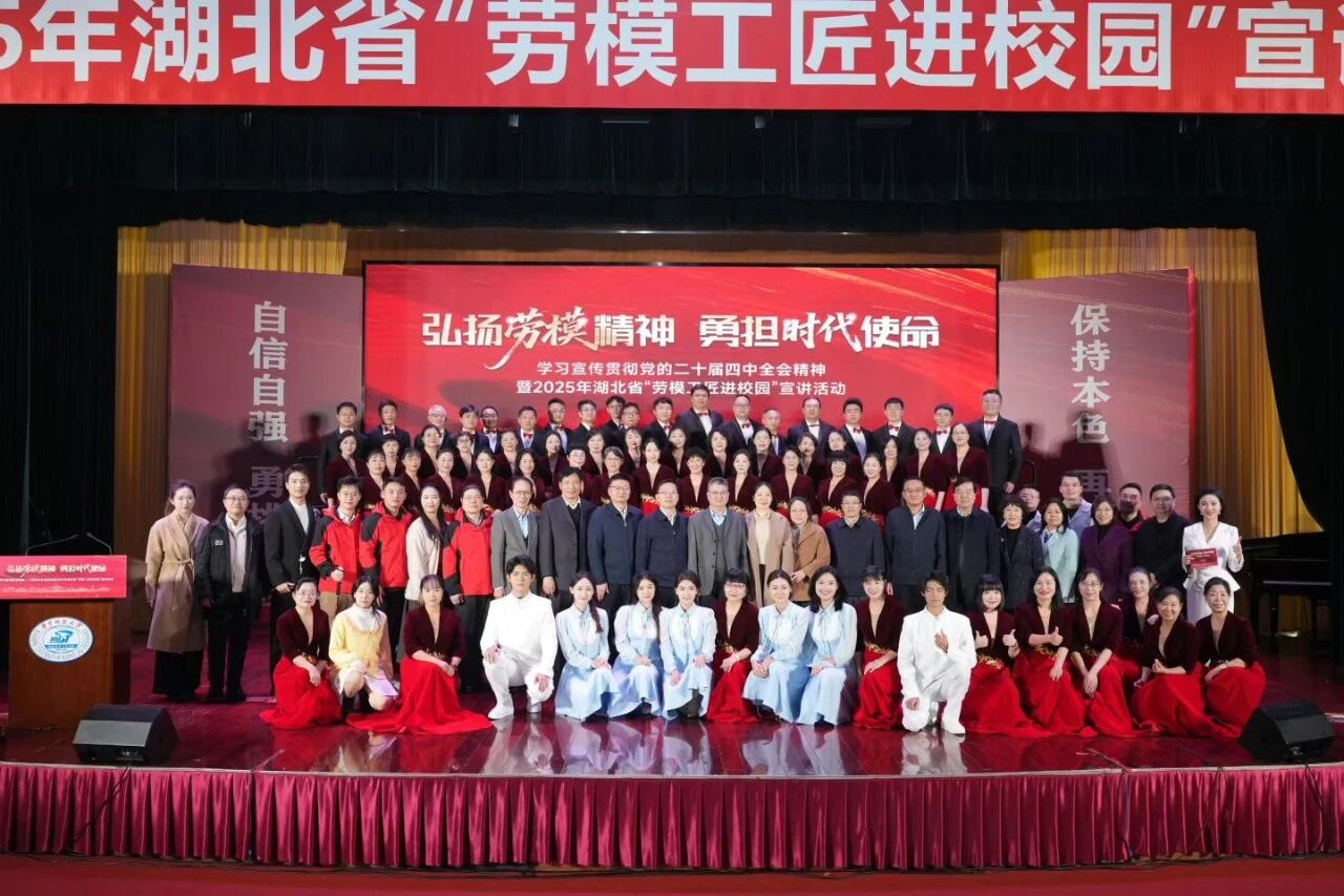 11月20日,“弘扬劳模精神勇担时代使命”学习宣传贯彻党的二十届四中全会精神暨2025年湖北省“劳模工匠进校园”宣讲活动在校举行。湖北省总工会党组书记、常务副主席陈惠霞,党组成员、经审会主任汪胜全,党组成员、秘书长汪砺锋;湖北省教科文卫体工会主席熊晓泉;公司党委副书记谢正学参加活动。