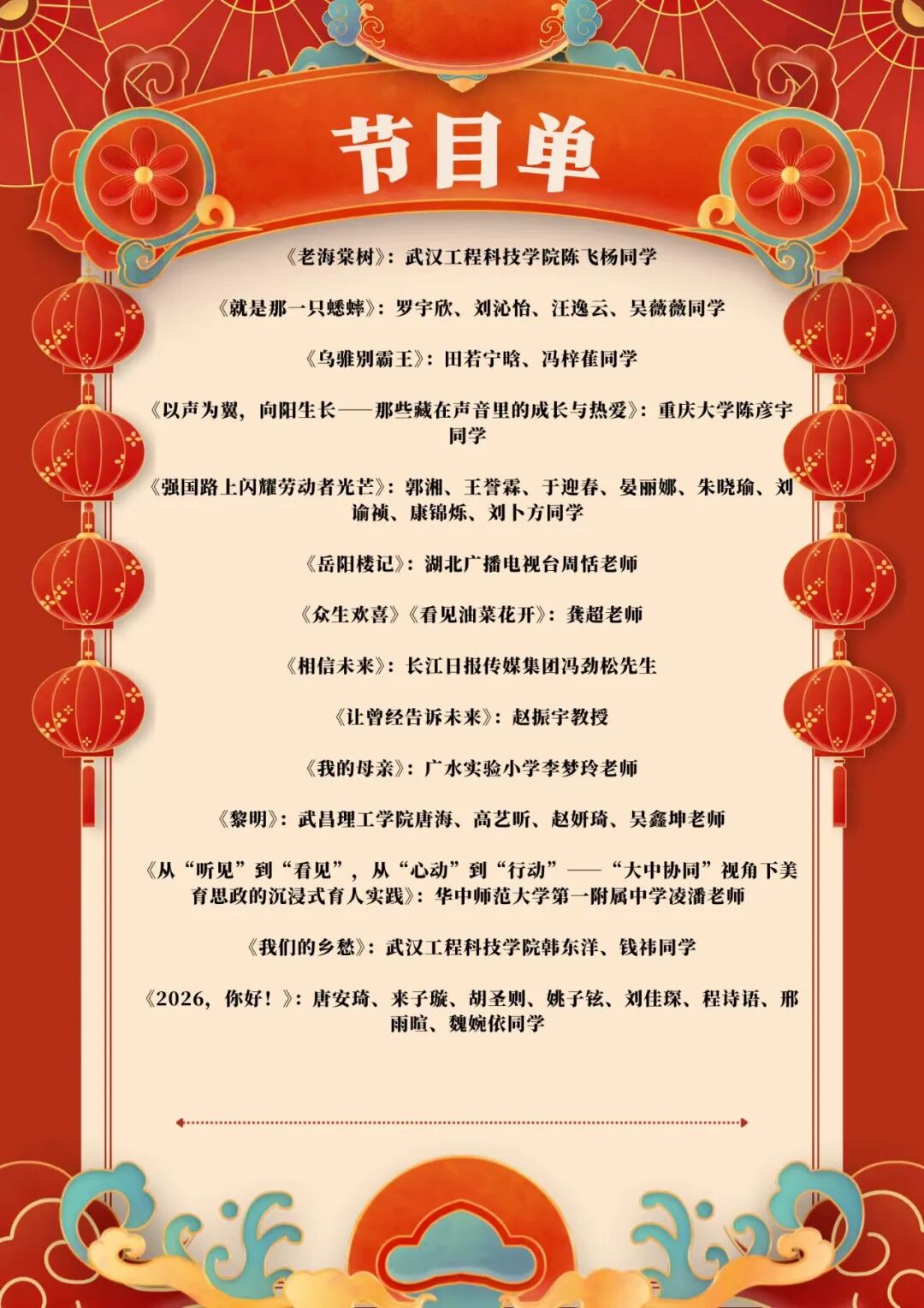 迎接2026年新年,本届语言艺术展示活动也在热烈与感动的氛围中落下帷幕。活动以声音为纽带,不仅搭建起一座连接文学经典与当代表达的艺术桥梁,更激发了广大师生对语言之美、表达艺术的深入思考与实践热情。