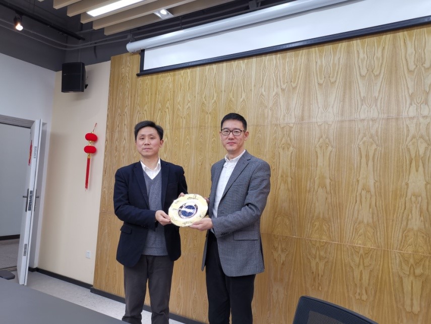 经理张明新做了团队建设报告,全面介绍了公司发展历程、团队力量、团队建设、人才培养及未来发展方向等主要内容。双方就团队建设、部校共建、党建工作、团队队伍建设、人才培养模式、智库建设和实验中心建设以及员工工作等议题进行了深入交流。