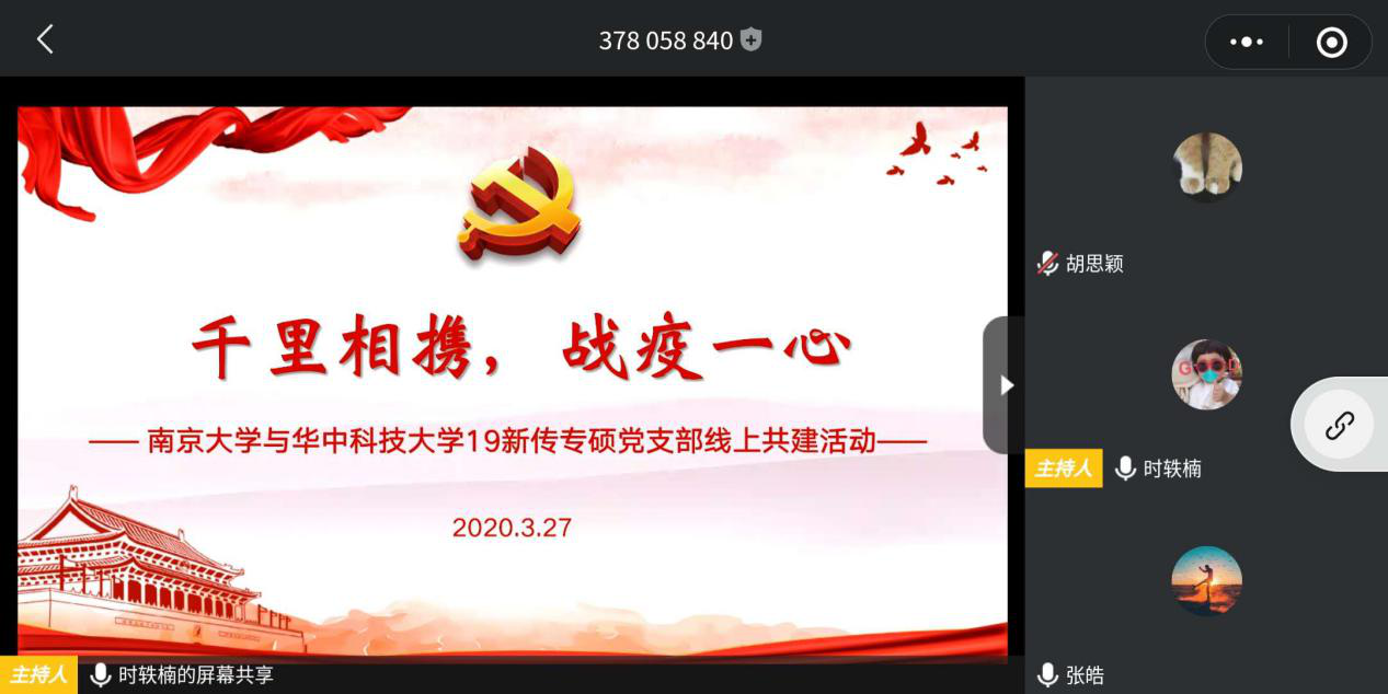 为深入学习贯彻习近平总书记关于疫情防控工作的重要讲话精神和指示,贯彻落实《新时代爱国主义教育实施纲要》的相关要求,3月27日晚,bw必威西汉姆联官方网站19级硕士新传出版党支部联合南京大学19级新传专硕党支部开展了3月“主题党日”活动。