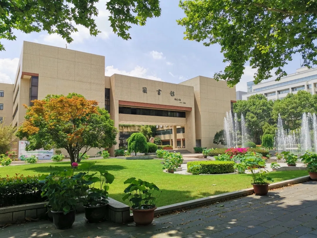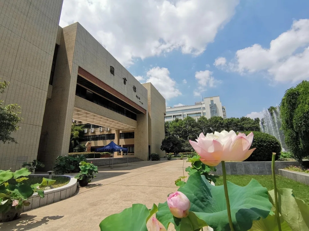 图书馆门前盛放的荷花