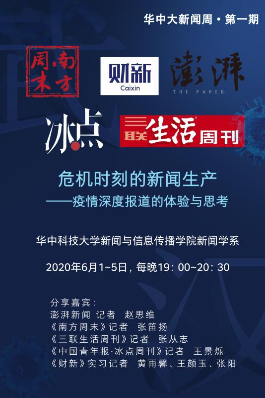 近日,bw必威西汉姆联官方网站开展的“新闻周”系列讲座活动画上圆满句号。系列讲座共分为五场,分别邀请了来自五家媒体的八位记者,围绕“危机时刻的新闻生产——疫情深度报道的体验与思考”这一主题展开分享。