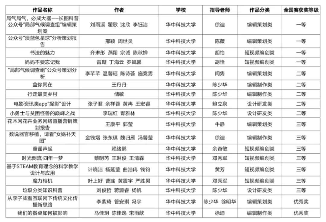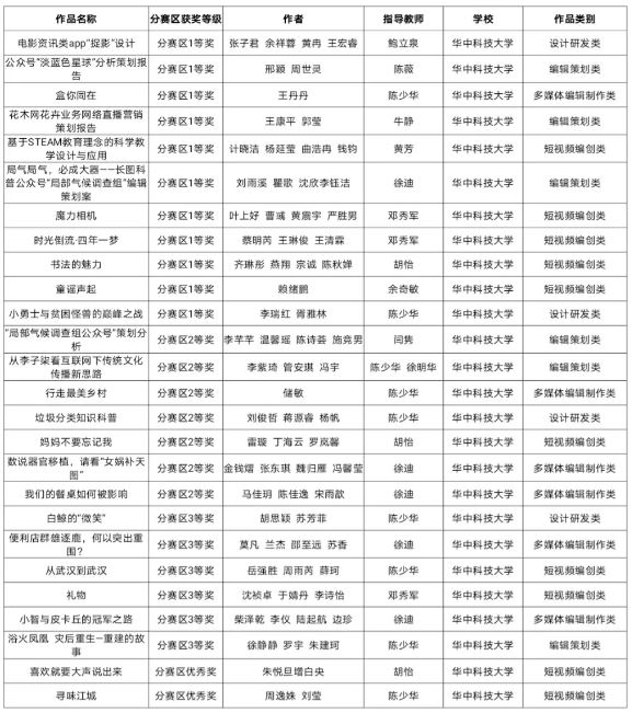 华中分赛区公司获奖名单如下(按“获奖等级+作品名称拼音”排序)