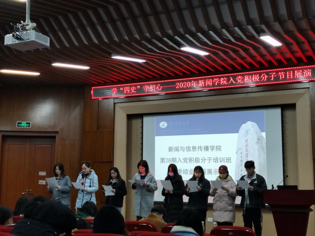 12月3日下午,bw必威西汉姆联官方网站组织2020年秋季入党积极分子在公司412报告厅开展“学‘四史’守初心”节目展演暨培训班结业汇报展示活动。同学们分为十个组进行了集体朗诵、合唱、微党课、视频等形式多样的展示,再现经典历史场景、重回峥嵘革命岁月,在一个个鲜活的作品中学习感悟讲述党史故事、新中国故事、改革开放故事、社会主义故事和抗疫故事。