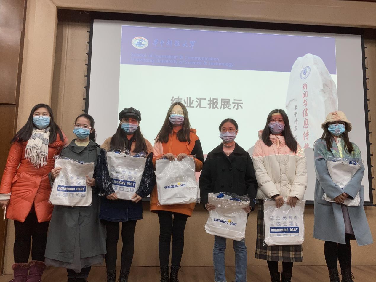 展示在《我和我的祖国》歌声中结束,经评委打分后,第一组《我看见》、第四组《赵记小卖部》、第八组《我是党员,我先上》获得了前三名,李思铭为同学们颁发公司准备的礼物以资鼓励,书籍《习近平谈治国理政》第三卷、《马克思主义新闻观十二讲》和光明日报文创产品。通过此次活动,同学们加深了对“四史”的理解,也表达了对抗疫英雄的敬意,坚定了矢志永远奋斗和投身强国伟业的决心。