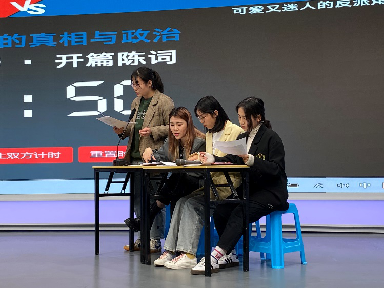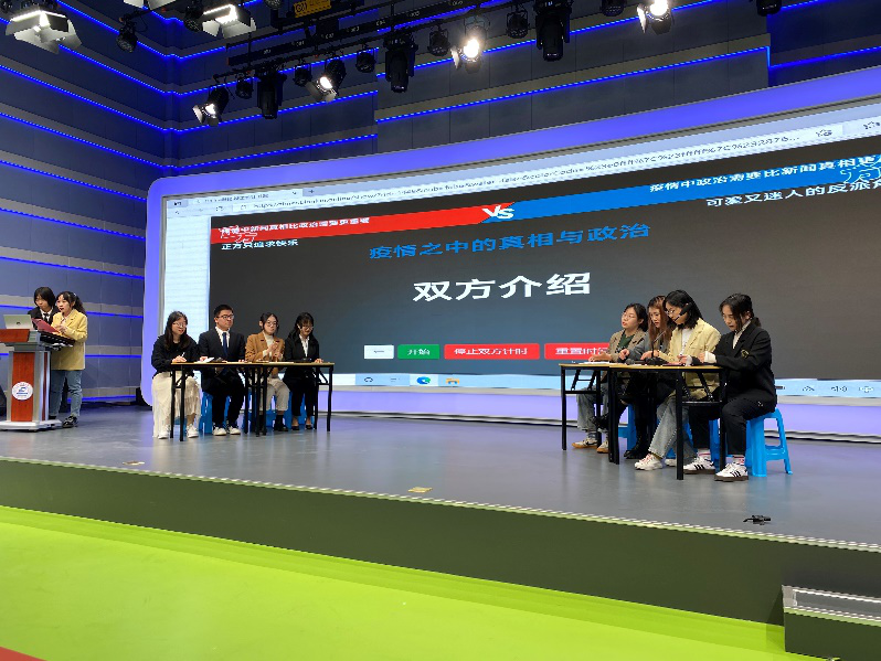 随后,双方辩手就对手立论观点进行驳辩、攻辩、质询和自由辩论,辩手们分别就 “政治需求的立足点”、“公众信息接收的不对称”、“虚假信息和谣言”、“国家利益与个人利益的关系”等话题各抒己见,据理力争,不同观点之间碰撞交锋,使得这场没有硝烟的战争愈演愈烈,也越发精彩纷呈。