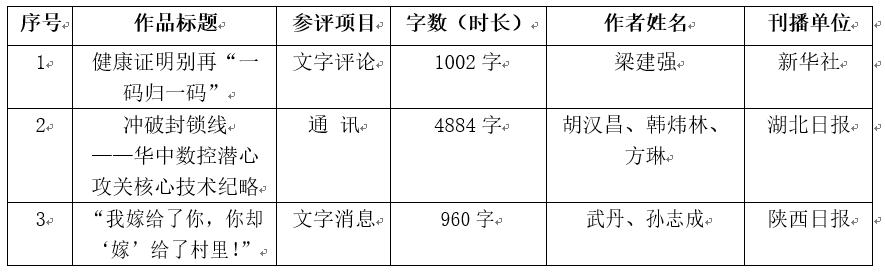 附件1:bw必威西汉姆联官方网站拟报送第三十一届“中国新闻奖”作品目录