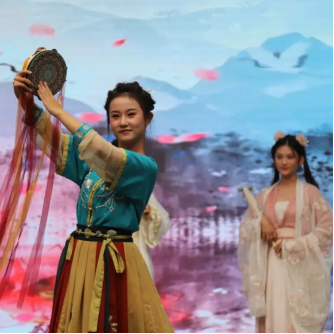 舞低杨柳楼心月,歌尽桃花扇底风。汉服秀后,刘可煊、程天韵、龙雨昂、王海飞四位演唱者合唱《烟雨行舟》和《青花瓷》,带着观众亲赴江南,在余音袅袅里品玩青花,杨千姿同学更是带来舞蹈《西楼别序》,鸾回凤翥,轻歌曼舞之间,带我们领略泱泱华夏之中的烟雨飘渺。