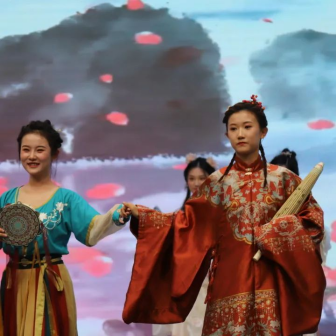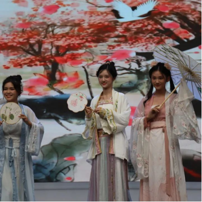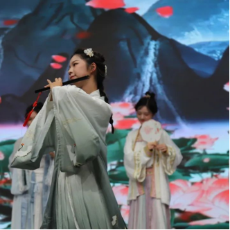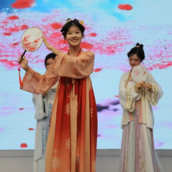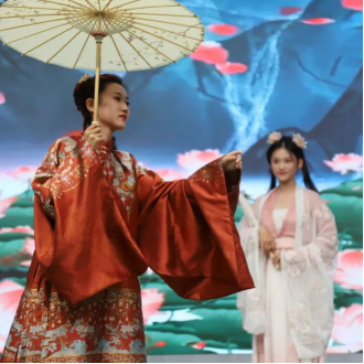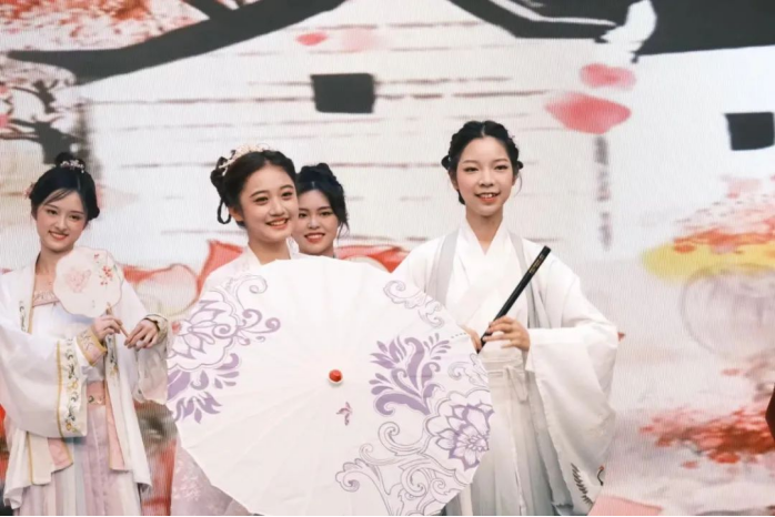 幽幽千年,熠熠华服。在四位主持人的惊艳亮相后,播主2201班为大家带来了古风古韵的汉秀。中国有礼仪之大,故称夏,有服章之美,谓之华。九位女娘从妆发造型到服饰道具,从一肌一容到一颦一笑,都各有千秋,各具风韵。