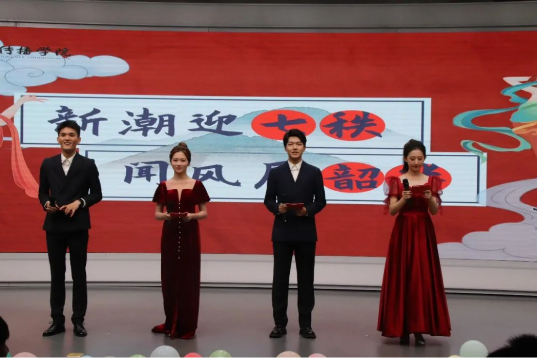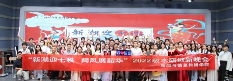9月30日晚七点零五分,“新潮迎七秩 闻风展韶华”2022级本研迎新晚会于公司一楼演播厅举行。经理张明新,党委副书记李彬彬,副经理李华君,广播电视系主任彭松,新闻2203班教师班主任徐涵,新闻2204班教师班主任汪让,播主2201班教师班主任彭媛以及学工组各位辅导员出席本次晚会。