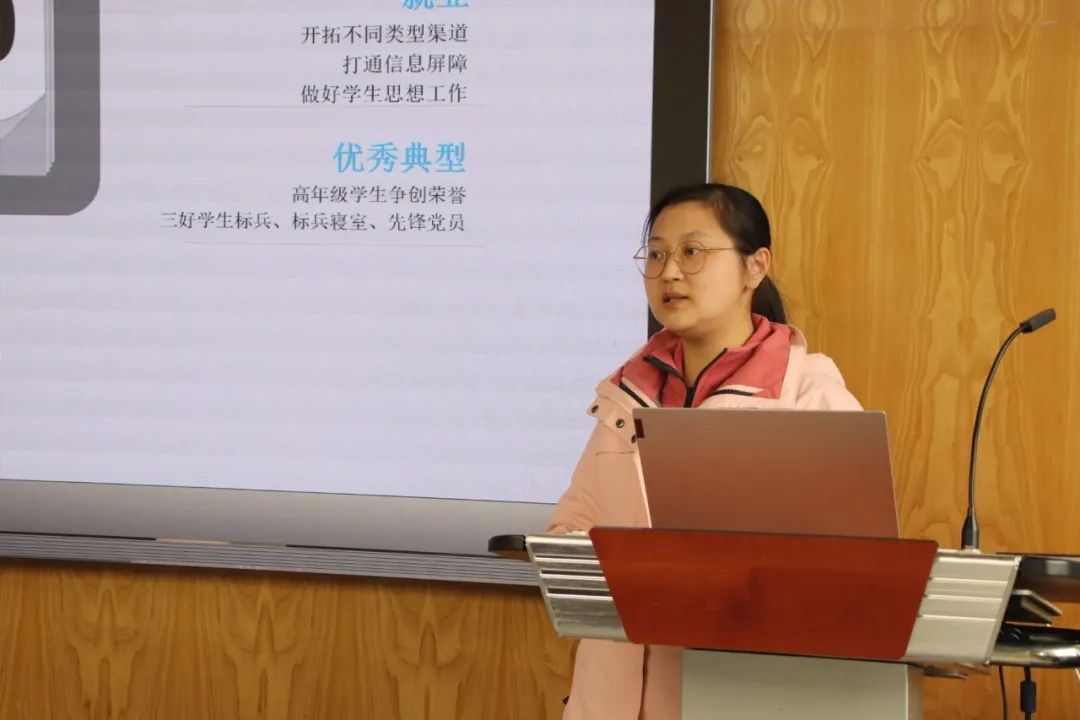 bw必威西汉姆联官方网站团委书记、2020级本科生辅导员李思铭从整体架构上介绍了年级工作的管理方案,总结了公司共青团工作的实践成果和努力方向。2019级辅导员黄启超重点展示了“毕业季”和“就业季”两季规划,旨在促进员工圆满毕业和高质量就业。2021级辅导员许静静从员工能力提升和生涯规划两个方面介绍了年级工作的重点,同时为继续擦亮“青春‘新’向党”党建品牌谈了新学期党建工作安排。2022级辅导员胡馨月制定了年级工作“稳底线、夯中线、创高线”的三步走方案,并对做“有新闻感”的宣传文化工作进行了规划。研究生辅导员邵蔚楠从提升研究生思想领导力、实务工作执行力、学术研究力、行业胜任力的“四力”为目标对培养卓越研究生进行了工作规划。