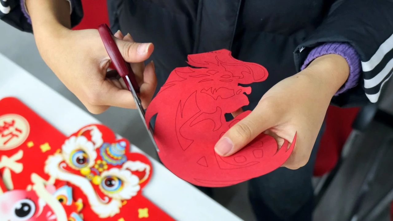 手工摊位更是创意无限,红纸在同学们的巧手中轻盈翻转,化作栩栩如生的生肖窗花和精致可爱的金鱼灯笼,每一件作品都凝聚着大家的智慧与欢乐,让温馨的氛围弥漫整个现场。