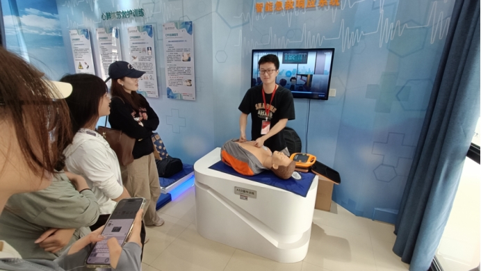 4月25日上午,新闻 2403 班同学前往安全教育基地开展实践活动——在消防知识展区,同学们认真聆听讲解,了解灭火器的操作方法,并体验了模拟灭火的过程;在急救知识板块,同学们学习心肺复苏等实用技能,模拟操作中逐渐掌握急救要领,并且在讲解员的演示下,学会了AED除颤器的使用方法。