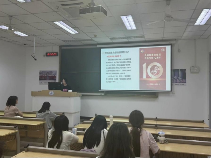 4月29日,新闻2401班于东九楼开展4月安全教育主题班会。班级安全员王诗雨首先进行老员工国家安全教育,重点讲解12339国家安全情况线索举报电话、网址等,帮助同学们了解作为老员工应该如何保卫国家安全。
