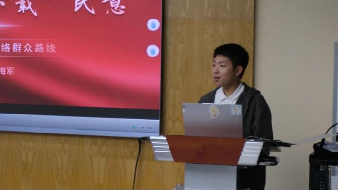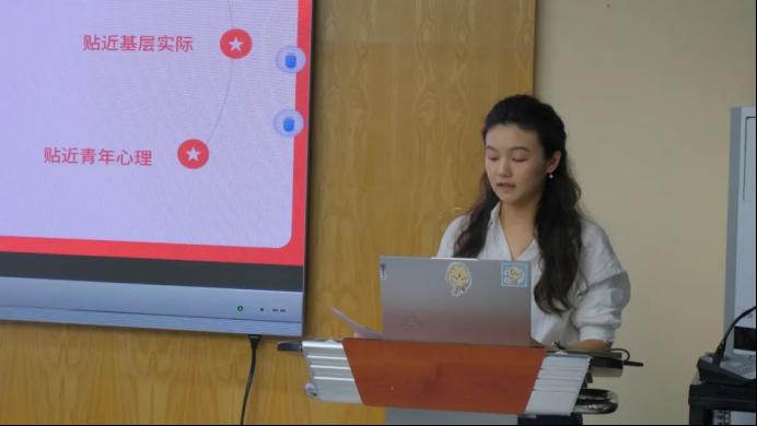 王诗祺在微党课中探讨青年群体在舆论工作中技术融合、文化破壁力和创新表达力的三大优势,青年工作者要把握政治话语向大众话语的转化、中国标准向国际标准的转化、传统文化向现代审美的转化,做真相的守护者、创新的实践者和文明的对话。