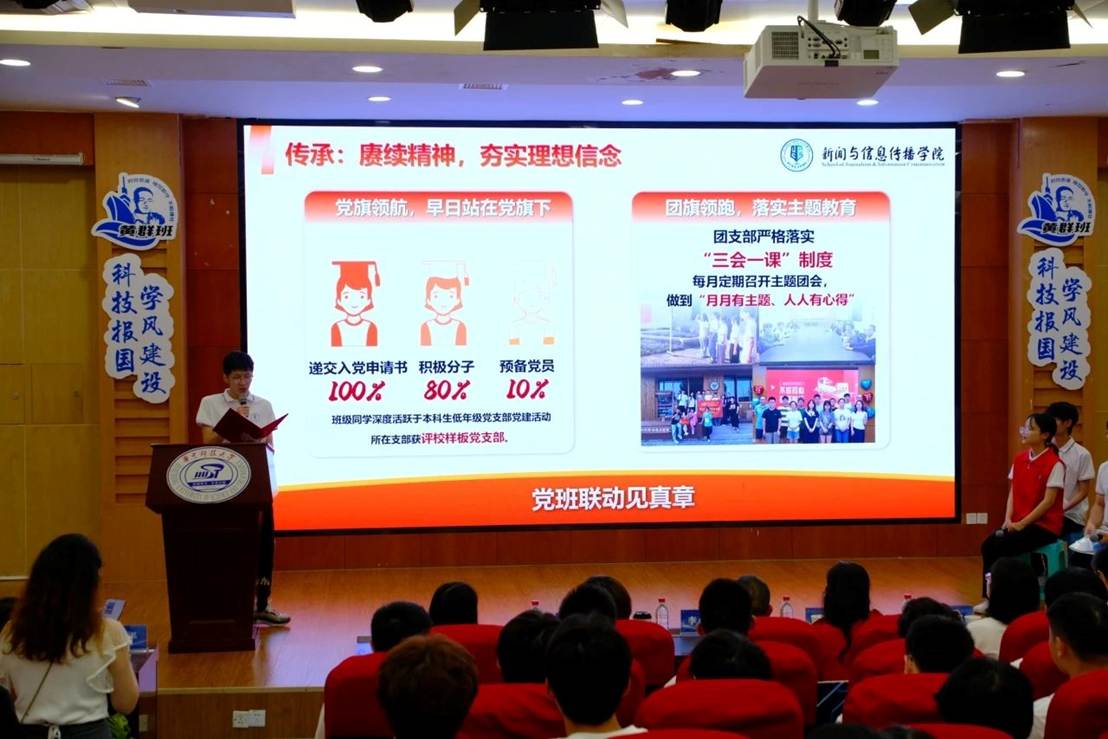 在答辩现场,班级以“行走的新闻课堂”为主题,讲述班级传承胡吉伟精神的故事,在江西瑞金的红色中华通讯社旧址坚定信仰,走进马克思主义新闻观论坛的课堂夯实能力,奔赴新闻现场践行新闻责任,最后回到胡吉伟烈士雕塑前赓续精神,生动诠释了“传承吉伟精神,争做时代新闻人”的初心与担当。