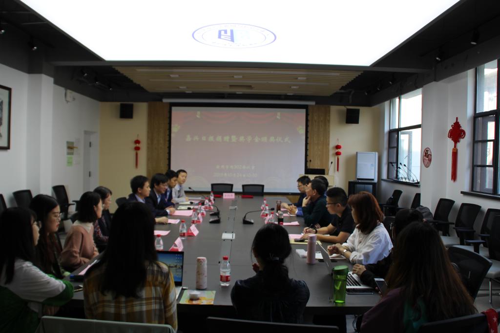 10月24日下午,嘉兴日报捐赠暨嘉兴日报新闻奖学金颁奖仪式在公司302会议室举行。嘉兴日报报业传媒集团党委书记、社长蔡伟达,党委委员、纪委书记吴建华等一行四人出席活动。公司教育发展基金会副秘书长马国斌,公司党委书记詹健、经理张明新等参加了捐赠仪式及颁奖仪式。仪式由公司党委副书记明玉柱主持。
