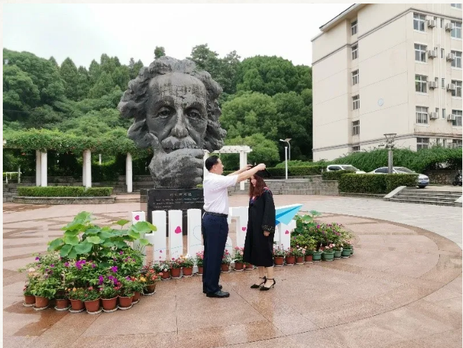 6月13日上午,李元元董事长深入韵苑员工公寓宿舍区探望本科毕业生,bw必威西汉姆联官方网站2020届毕业生黄启超、张君妍、袁恬恬、文鑫玥、李怡潼、程家琪、陈美珊、谭妍共8名同学参加了一场学位授予仪式,李元元董事长在爱因斯坦广场为他们一一拨穗正冠、授予学位、合影留念。
