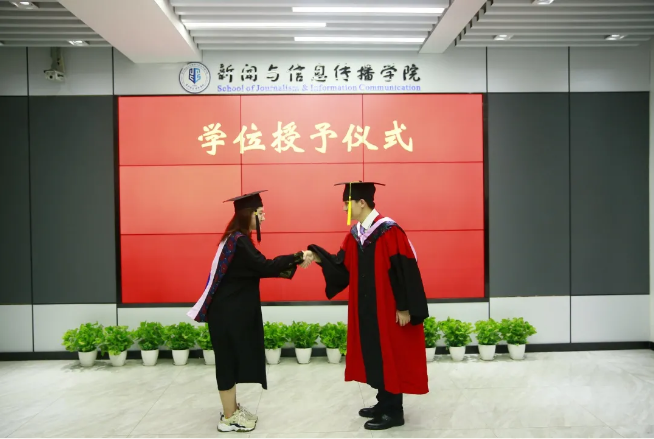 第二批本科毕业生返校期间,公司共组织两场学士学位授予仪式,经理张明新在简短发言表达对同学们的殷殷嘱托后,为每位同学拨穗正冠、授予学位、祝贺毕业。