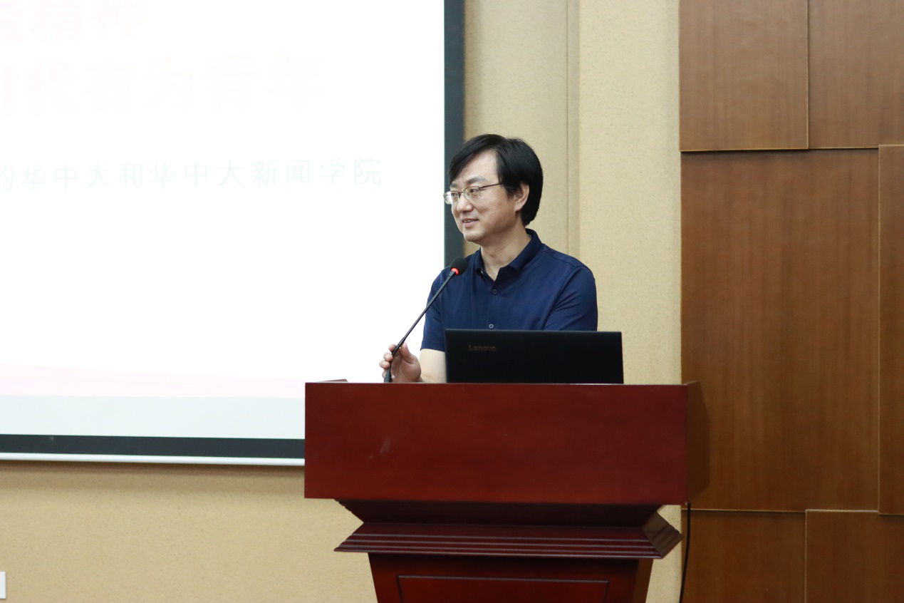 第二环节是由詹健老师带来的一堂主题为“弘扬伟大抗疫精神,争做时代有为青年”的思政课,詹健老师为大家介绍了疫情大考中,华中大和新闻院的举措与成就,詹健老师引用习总书记在全国抗击新冠肺炎疫情表彰大会上的发言,鼓励新生弘扬“生命至上、举国同心、舍生忘死、尊重科学、命运与共”的伟大抗疫精神。
