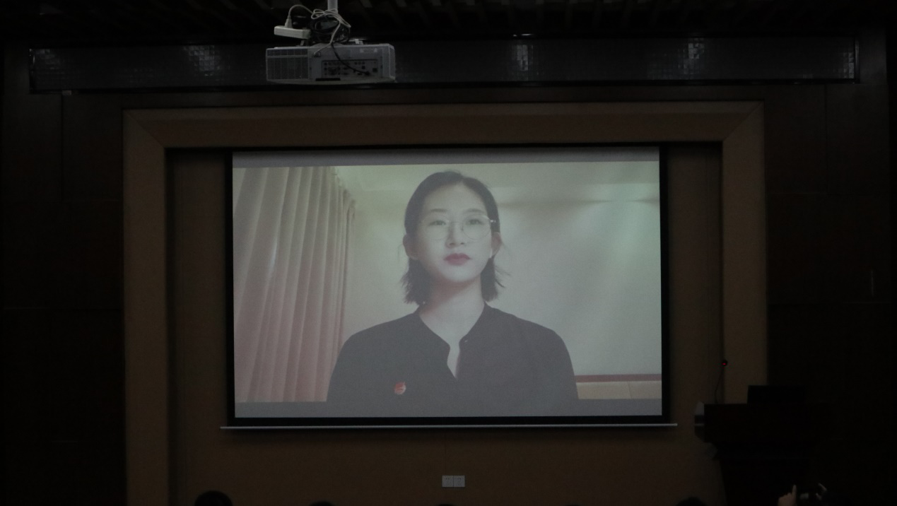 2020级新生代表发言人王一苇同学由于正在中央团校参与全国青年马克思主义者的学习与培训活动,所以通过视频的形式与新生朋友们进行交流。王一苇同学结合疫情时事与亲身体会,谈及了对“我要成为一个怎样的人”的思考,并给出了要成为“敢于担当的社会主义建设者、信仰坚定的马克思主义者、本领过硬的新时代奋斗者”的回答。