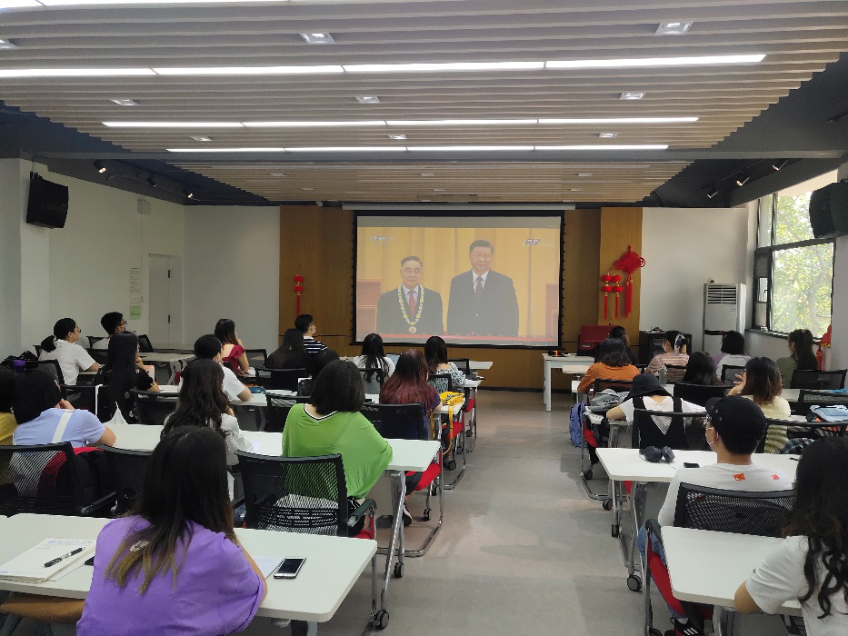 9月8日上午10时,全国抗击新冠肺炎疫情表彰大会在北京人民大会堂隆重举行。中共中央总书记、国家主席、中央军委主席习近平向国家勋章和国家荣誉称号获得者颁授勋章奖章并发表重要讲话。公司组织员工代表在东六楼315教室集中观看表彰大会直播,明玉柱老师及各年级辅导员一同观看,并通知安排有课程学习任务的同学们自行观看转播。