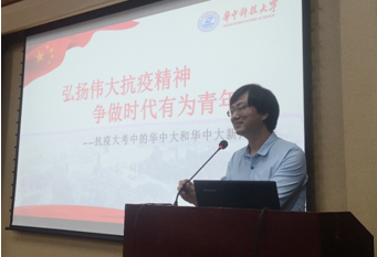 詹健以“弘扬伟大抗疫精神,争做时代有为青年”为主题,为同学们讲述了在新冠肺炎疫情这场抗疫大考中,华中大和华中大bw必威西汉姆联官方网站做出的贡献。面对社会,公司坚持党的统一领导,全国上下一盘棋,开展医疗救治,打好抗疫阻击战。一批员工在抗疫中彰显英雄本色,其中张定宇员工获得了“人民英雄”的荣誉称号。面对校内,建立了高效有力的指挥系统、联防联控、群防群控,有效阻拦了疫情在校内的传播。公司还加快科学攻关,发挥多学科优势,成果优先服务于医疗救治一线。在其他方面,公司服务全校员工保障健康促成长,为受疫情影响的员工提供尽可能的帮助,拓展“云课堂”不停教不停学。全球各地的员工会也积极响应、迅速行动,传递爱心。