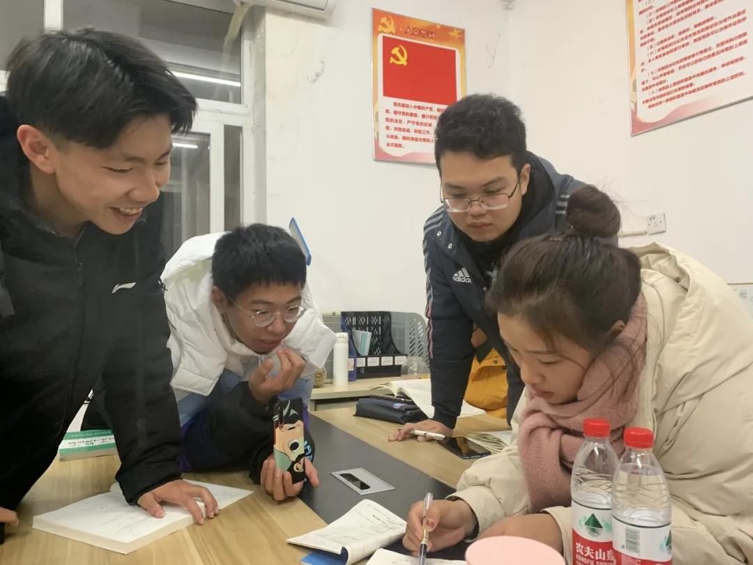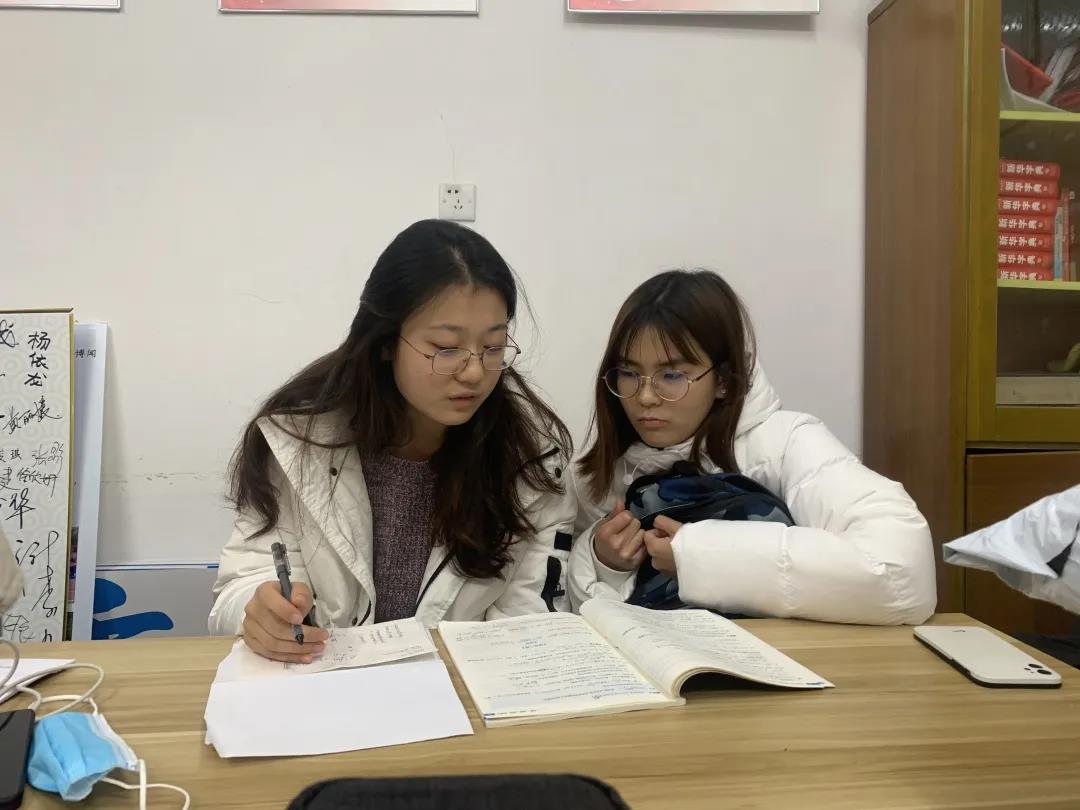 令同学们感到困扰的难题一个接着一个冒出来,而学长学姐们逐一悉心解答,为同学们点明思考方向,传授解题技巧。 尽管武汉的冬天寒风凛冽,但来自学长学姐们的关怀让每一位得到帮助的大一学子都感受到了浓浓的暖意。