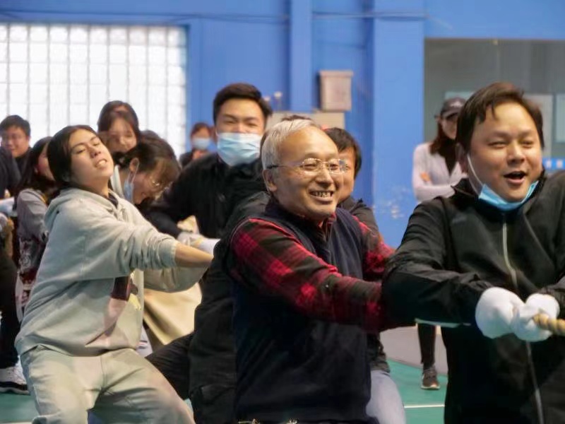 最后一项是激动人心的拔河比赛,也是决定积分关键的比拼。此时老师和同学们做好准备,“预备,开始”,随着号声,双方齐齐发力,拉拉队的呐喊助威,比赛队员们的齐心协力,拉远的是绳子,拉近的是师生的情谊。