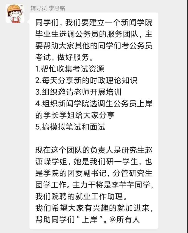 公司团委书记李思铭发布招募服务团队成员的通知