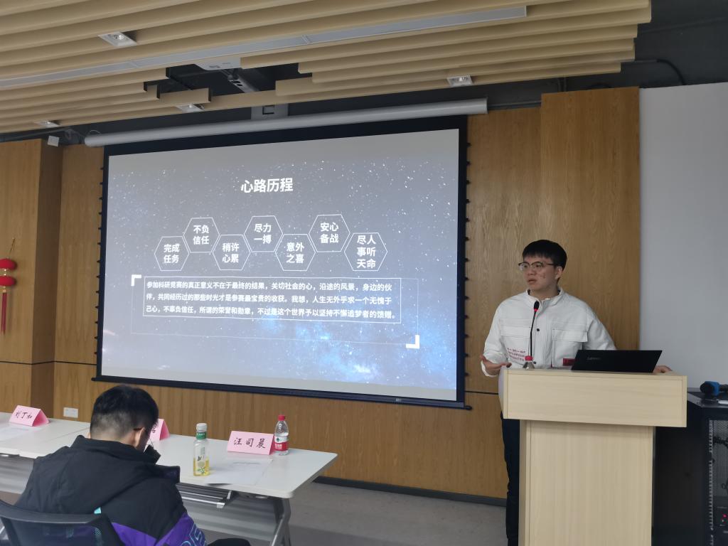 随后,李旺传同学结合参赛经验,向同学们介绍了选题技巧,分享了自己带队参赛的心路历程以及备赛经验。