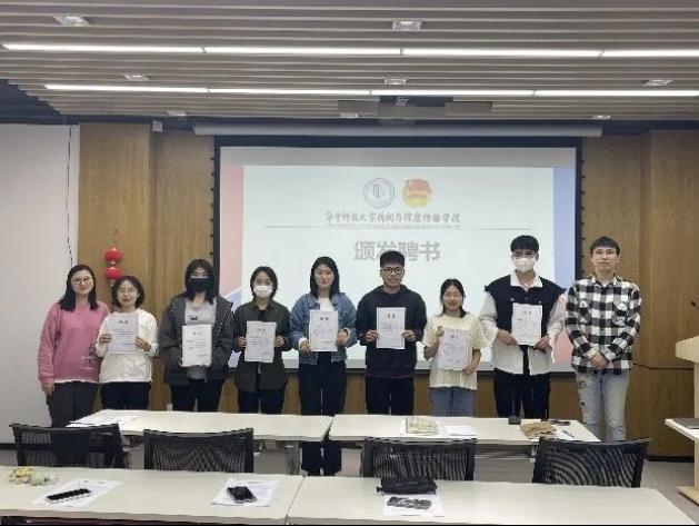 最后,李思铭老师和陈子建老师为团委副书记、部门负责人颁发聘书并合影留念。