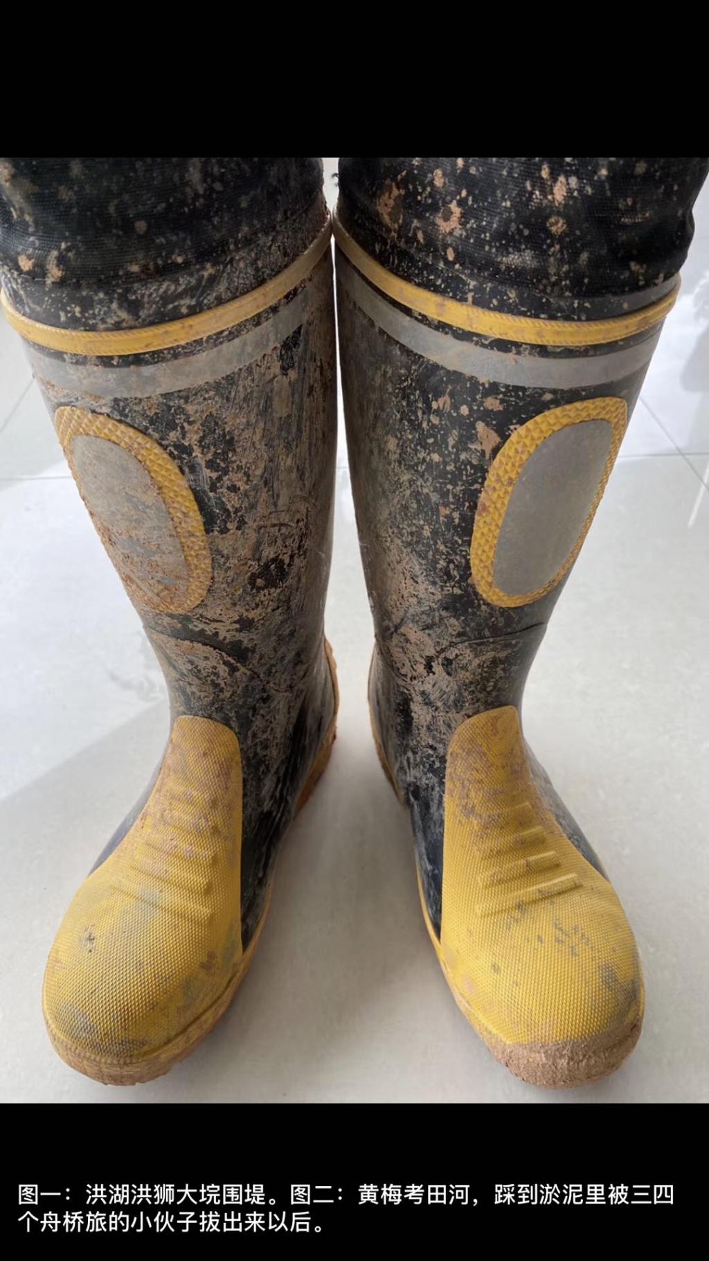休整了一个多月之后,南方梅雨季汛期来临,魏铼又投入到了防汛抗洪的报道中。8月1日,魏铼在朋友圈晒出了一张照片,“黄梅考田河,踩到淤泥里被三四个舟桥旅的小伙子拔出来之后”,照片上的他穿着黄黑相间的胶鞋,鞋面上全是泥点,小腿处的鞋帮内侧被泥覆盖。当时,他正在拍摄一处管涌,周围的淤泥夹杂着草看不清楚,他一脚踩进了淤泥里,整个身体立刻往下陷,旁边的几个战士赶紧过去把他拉住才得以脱身。